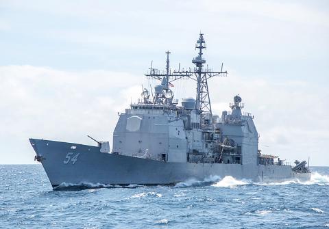The ship entered the Strait from the southwest, heading north, the ministry said in a statement, but did not name the vessel, although Reuters identified it as the USS Antietam.