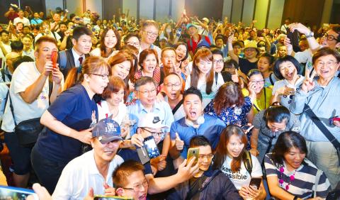 Ko arrived shortly past noon and was welcomed by enthusiastic chants of: “Taiwan’s choice — Ko Wen-je,” “The best choice — Ko Wen-je” and “The party members’ choice — Ko Wen-je” — similar to the slogans used during his mayoral re-election campaign last year.