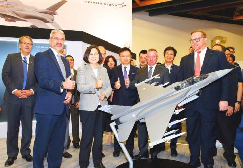 President Tsai Ing-wen (蔡英文) yesterday made clear her intention to buy more upgraded F-16 jets from the US and expressed the hope that Washington would reach a decision on the sale, as she tried out an F-16 flight simulator at the opening of the Taipei Aerospace and Defense Technology Exhibition.