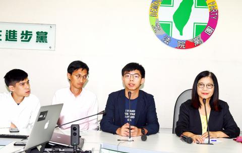 Wong and fellow Hong Kong activists Eddie Chu (朱凱迪) and Lester Shum (岑敖暉) met with the Democratic Progressive Party (DPP) legislative caucus for more than an hour.
