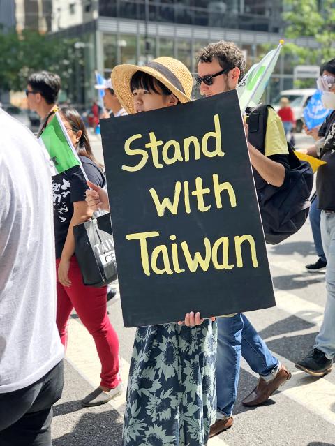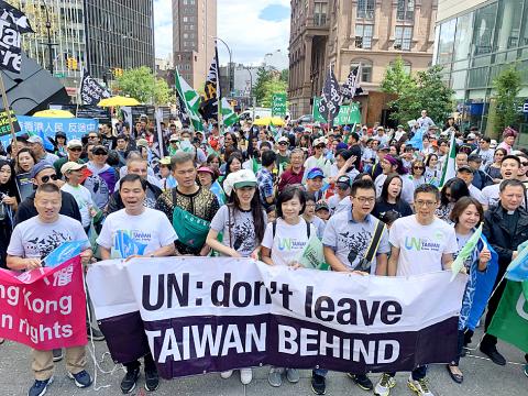 Hundreds of Taiwanese expatriates and others marched in the Manhattan borough of New York City on Saturday to call attention to Taiwan’s exclusion from the UN and Beijing’s efforts to further shrink the nation’s space in the international community.