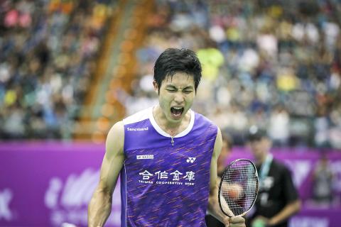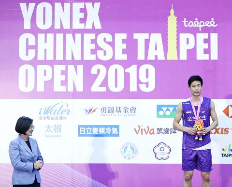 With the raucous support of the home crowd, which included President Tsai Ing-wen (蔡英文), Chou won the second game 21-13.