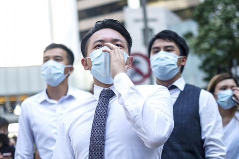The face mask has become a symbol of resistance among protesters who fear retribution if they are identified: China has applied pressure to businesses such as Cathay Pacific Airways Ltd (國泰航空) to fire employees who participate in demonstrations.