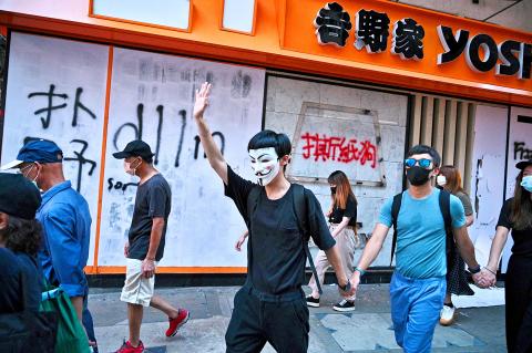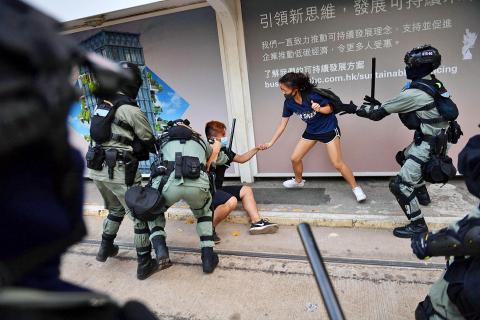 All subway and train services were suspended, lines formed at the cash machines of shuttered banks and shops were closed as Hong Kong dusted itself off yesterday and then started marching again after another night of rampaging violence decried as “a very dark day” by Hong Kong Chief Executive Carrie Lam (林鄭月娥).
