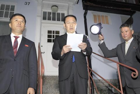 “I am very displeased about it,” he told reporters out the North Korean embassy.