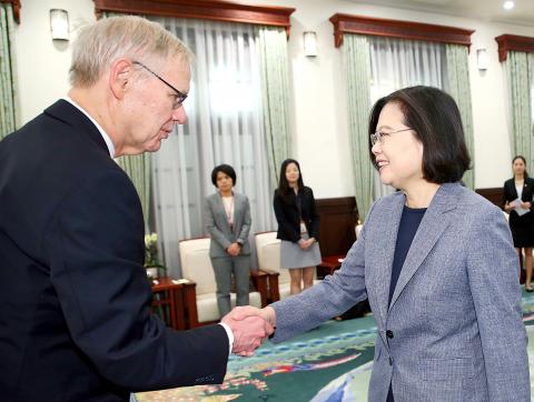 Tsai expressed regret over the summit’s cancelation at a meeting with Brookings Institution senior research fellow Richard Bush at the Presidential Office in Taipei.