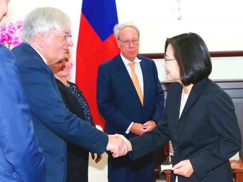The president told the delegation — which included former American Institute in Taiwan chairman Raymond Burghardt, former US ambassador Susan Elliott and Susan Thornton, a senior fellow at the Paul Tsai China Center of Yale Law School — that the US is Taiwan’s most important strategic and economic partner.