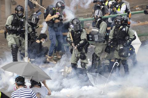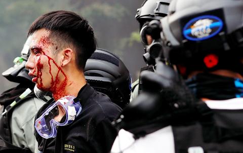 Polytechnic Students’ Union president Woo Kwok-wang (胡國泓), who was still on the campus in Hung Hom, Kowloon, as of yesterday afternoon, said there were about 500 protesters inside, adding that about 70 to 100 people tried to leave the campus, but were met with tear gas fired by police.
