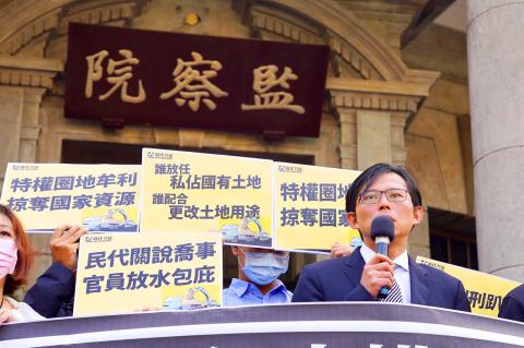 New Power Party (NPP) Legislator Huang Kuo-chang (黃國昌) yesterday urged the Control Yuan to investigate Kaohsiung Mayor Han Kuo-yu’s (韓國瑜) father-in-law, Lee Jih-kuei (李日貴), accusing him of illegally occupying more than 1 hectare of public land in Yunlin County with Han’s help.