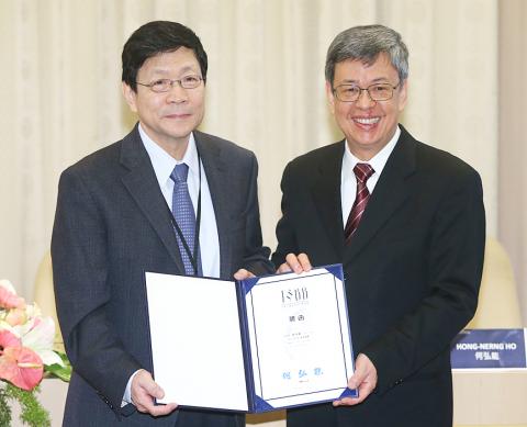 Also present at yesterday’s ceremony were Vice President Chen Chien-jen (陳建仁), Taiwan Biobank Project director Lee Te-chang (李德章), National Health Research Institutes distinguished researcher Tsai Shih-feng (蔡世峯), Taiwan Society for Biopreservation and Biobanking chairman Ho Hong-nerng (何弘能) and nearly 100 academics.