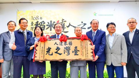 The Council of Agriculture (COA) yesterday honored Taitung County rice farmer Hsieh Mei-kuo (謝美國) with a plaque that reads “Taiwan’s glory” for being the first Taiwanese to win gold at a rice competition in Japan.
