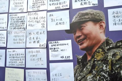 The helicopter, carrying military personnel to Dongaoling Base (東澳嶺) in Yilan County, went down in the mountains of New Taipei City’s Wulai District (烏來) on Thursday with 13 people on board. Eight, including Chief of the General Staff General Shen Yi-ming (沈一鳴), died in the crash.