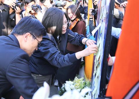 Tsai posted on the board dedicated to the deceased officers sticky notes written by military personnel stationed at the station who asked the president to post them on their behalf.