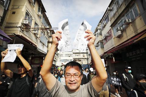 The marchers, including families with children, shouted slogans such as “Liberate Hong Kong, Revolution of our times!” and “Patriots use China-made products, don’t parallel trade!”