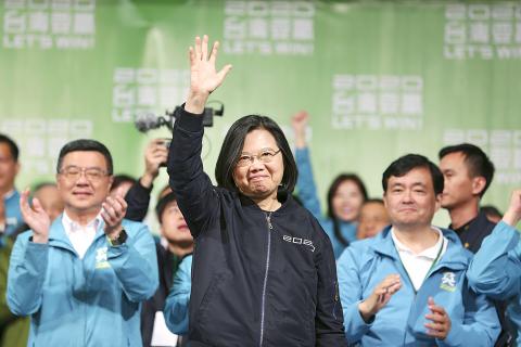 President Tsai Ing-wen (蔡英文) led her Democratic Progressive Party (DPP) to victory in yesterday’s elections, with the results giving her a solid mandate for a second term with 8.170,186 million votes, or 57.13 percent of the total ballots cast.