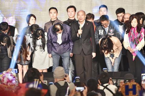 Kaohsiung Mayor Han Kuo-yu (韓國瑜), the Chinese Nationalist Party’s (KMT) presidential candidate, last night thanked supporters for their efforts as he conceded defeat in the election.