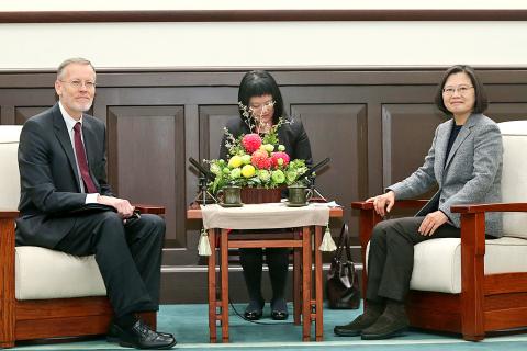 Christensen congratulated Tsai on behalf of the US government on her re-election, saying that the US and Taiwan are close partners bound by shared democratic values, and would continue to improve bilateral exchanges.