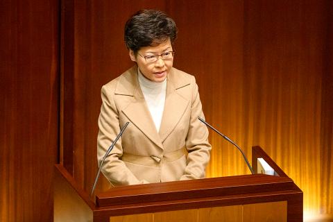 While it was not clear whether Lam was speaking in her own right, or under order or in coordination with Beijing, her comments had the feeling of a final warning to the people of Hong Kong that they “need to wear their loyalty to Beijing on their sleeves ... or else,” said Steve Tsang (曾銳生), director of the China Institute at London’s School of Oriental and African Studies.