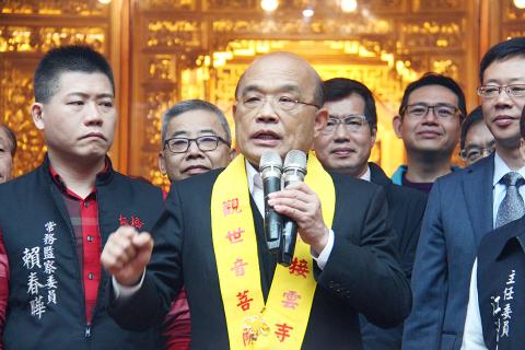 “To save others, you must save yourself first,” Premier Su Tseng-chang (蘇貞昌) said yesterday as he defended the government’s decision to ban exports of N95 respirators and other masks for one month.