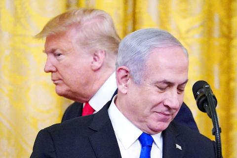 “Together we can bring about a ... new dawn in the Middle East,” Trump said to an enthusiastic audience that included throngs of Israeli and Jewish American guests — but apparently no Palestinian representatives.