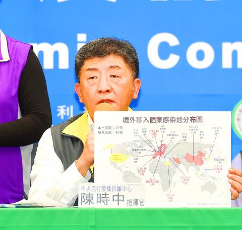 Minister of Health and Welfare Chen Shih-chung (陳時中), head of the center, said the global COVID-19 pandemic has changed drastically in the past few days, and the eight new cases — raising the nation’s total to 67 — were all people who had just returned to Taiwan.