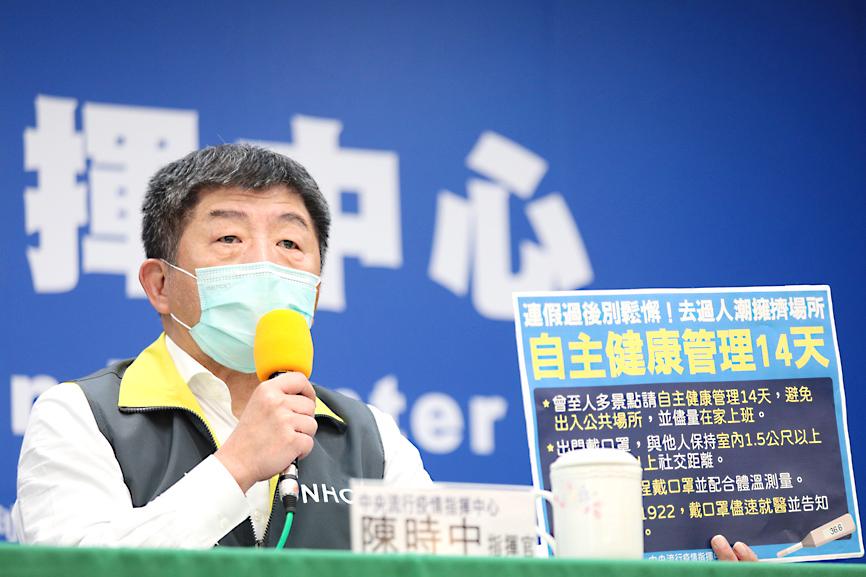 If people visited other crowded places for a prolonged length of time over the long weekend, they should also practice self-health management, and if they cannot work at home, they should strictly practice the aforementioned measures, as well as social distancing, wearing a mask and frequently washing their hands, he added.