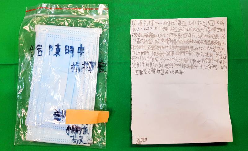 Taking a handwritten letter taped to a bag of masks of different sizes from his pocket, Chen said that he received the letter from a 10-year-old boy, who expressed his gratitude to the center for protecting everyone and wanted to give Chen the masks to protect him in the fight against COVID-19.