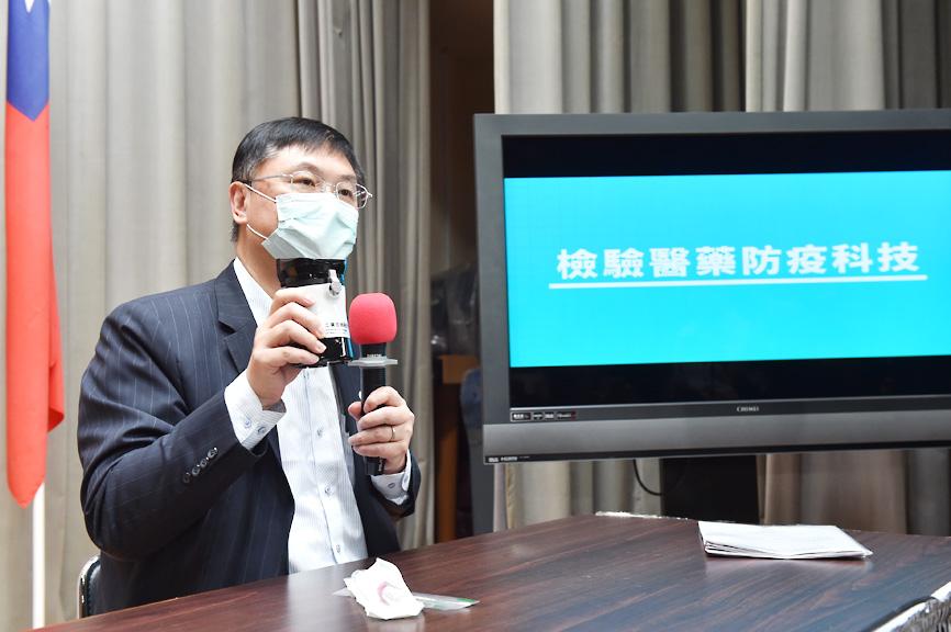 The kit, which works by testing nucleic acids, can produce results within one hour, Deputy Minister of Economic Affairs Lin Chuan-neng (林全能) told a news conference at the Executive Yuan in Taipei, adding that this brings researchers one step closer to developing a vaccine.