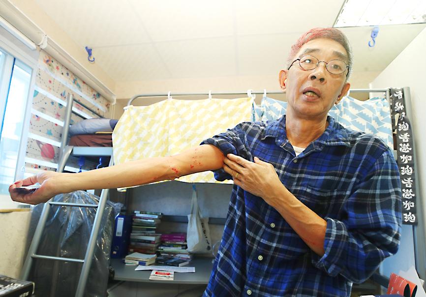 Lam Wing-kei (林榮基), a co-owner of Hong Kong’s Causeway Bay Books (銅鑼灣書店), who fled to Taiwan over fear of Chinese persecution, had red paint thrown on him on Tuesday morning by a man at a coffee shop in Taipei’s Zhongshan District (中山), just as his new bookshop in the city is set to open on Saturday.