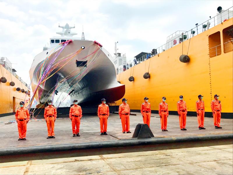 Vice Premier Chen Chi-mai (陳其邁) attended the launch for the new vessel — the Anping (安平) — at the docks of Jong Shyn Shipbuilding Corp, which was commissioned to build it.