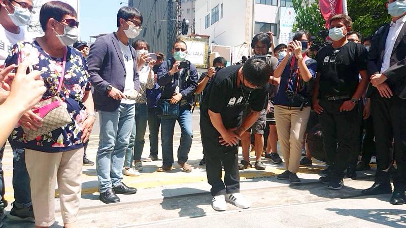 Hsieh, after exiting the courthouse yesterday, bowed in the direction of the bench, saying that he also wished to thank his lawyer, Yeh Chien-ting (葉建廷), for using his situation as a case study for his class and for bringing it to the attention of Lan Chin-lung (藍錦龍) of the Yilan County forensics office.