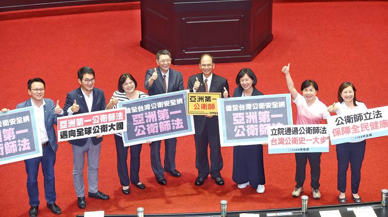 In an effort to help students of public health apply their expertise in the workplace and enable the nation to face the challenges posed by new epidemics, lawmakers yesterday passed the Public Health Specialists Act (公共衛生師法), touting it as the first of its kind in Asia.