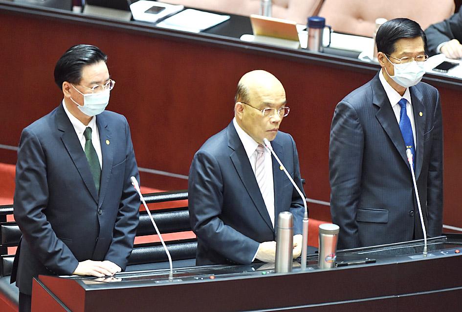 His Cabinet would follow President Tsai Ing-wen’s (蔡英文) instructions to engage with China on the principles of freedom, parity and democracy, thereby facilitating positive exchanges, Su said in an administrative report to the legislature.