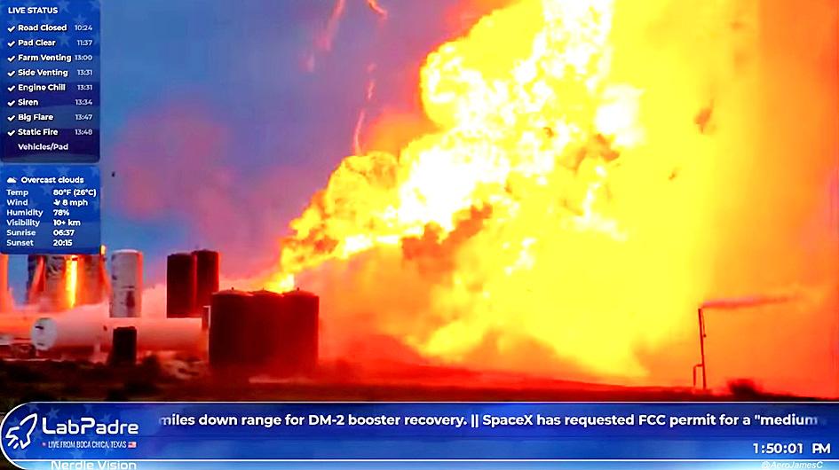 A prototype vanished in an explosive fireball at SpaceX’s Boca Chica test site on Friday, as seen in a livestream recorded by the Web site NASA Spaceflight.