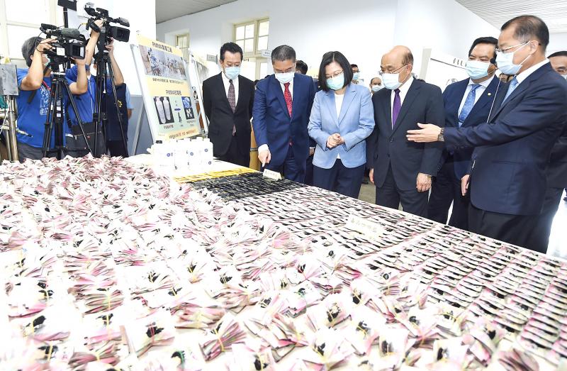 The confiscated chemicals along with packages of finished narcotic coffee powder were displayed at the National Police Agency (NPA) in Taipei as part of an event to mark Police Day, which was attended by Tsai, Premier Su Tseng-chang (蘇貞昌), Minister of the Interior Hsu Kuo-yung (徐國勇), Minister of Justice Tsai Ching-hsiang (蔡清祥) and other top officials.