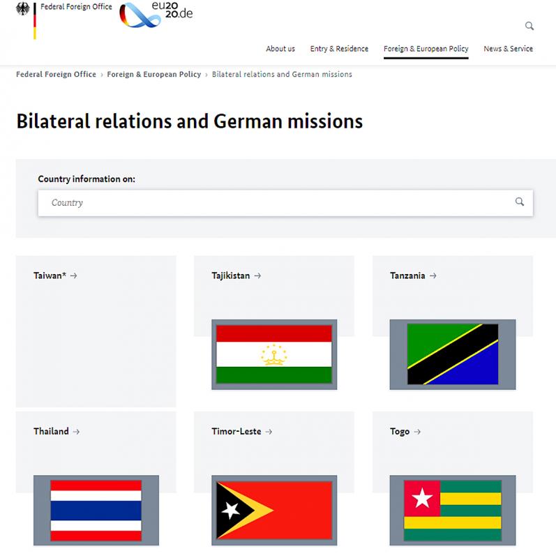 The site displayed a white box to differentiate Taiwan from nations with which Germany has formal diplomatic relations, Bruel said.