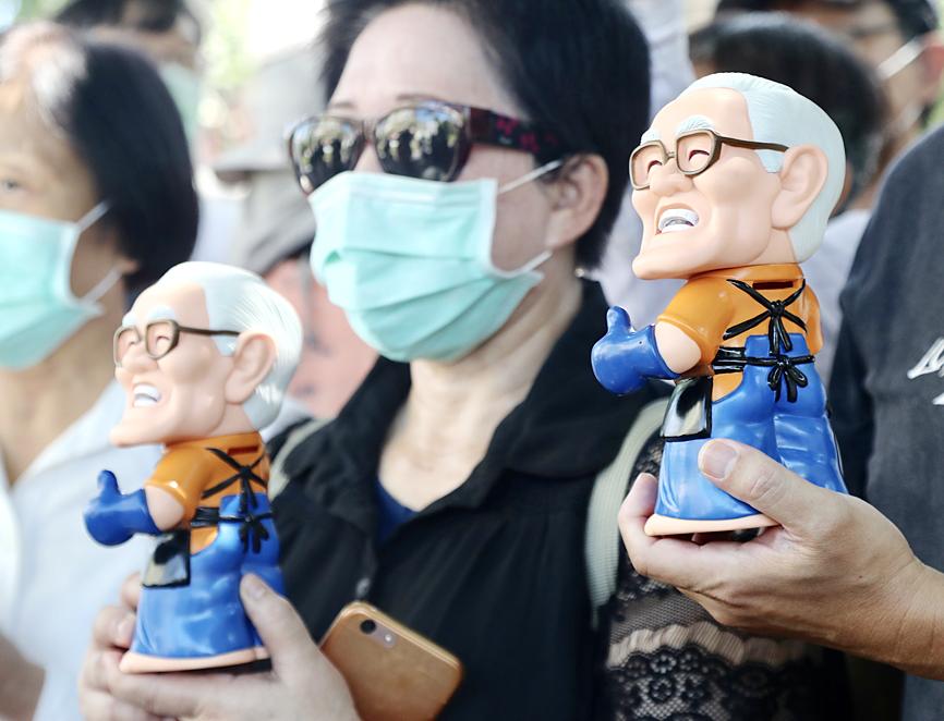 Lee Tung-hui’s wife, Tseng Wen-hui (曾文惠), was at the home to receive the urn. She did not attend the rest of the day’s events over concern for her health, sources said.