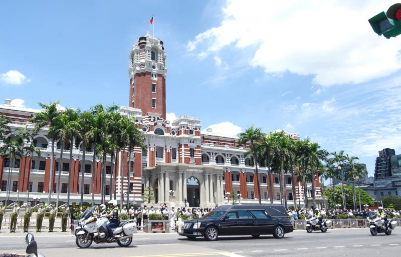 A funeral procession made a symbolic lap around the Presidential Office Building, where Lee held office from 1988 to 2000, during which he became Taiwan’s first president by direct popular vote.