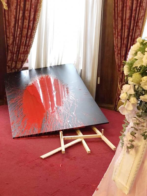 Presidential Office spokesman Xavier Chang (張惇涵) said: “We condemn such irrational, violent acts... Our office urges all people who visit the memorial to respect the wishes of President Lee and his family in a solemn and dignified manner.”