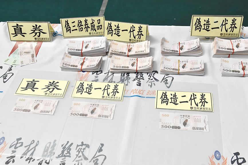 Yunlin Prosecutor Chu Chi-jen (朱啟仁) said that business owners in Huwei Township (虎尾) at the end of last month reported people making purchases with fake vouchers and alerted the police.