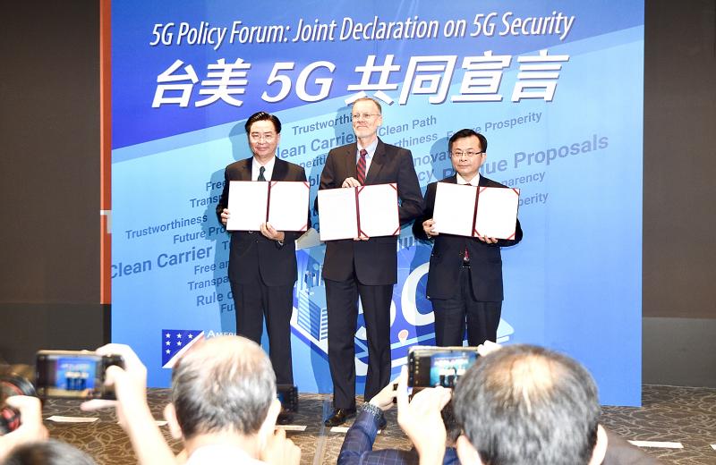 At another forum in Taipei yesterday, the AIT and the Taipei Economic and Cultural Representative Office in the US issued a joint declaration on 5G security, echoing the Prague Proposals.