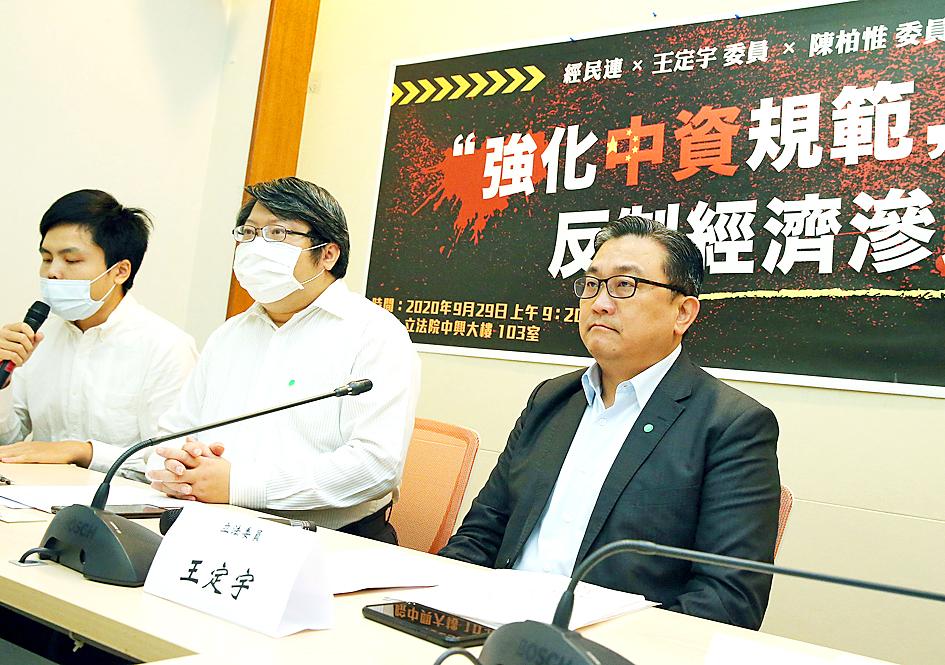 Democratic Progressive Party (DPP) legislators Wang Ting-yu (王定宇) and Chao Tien-lin (趙天麟) have proposed amending the Act Governing Relations Between the People of the Taiwan Area and the Mainland Area (兩岸人民關係條例) to tackle China’s “united front” tactics.