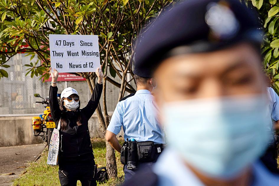 Yesterday, police arrested four men and five women suspected of arranging transport for the fugitives, the Hong Kong Police Force’s Organized Crime and Triad Bureau Superintendent Tony Ho Chun-tung (何振東) said.