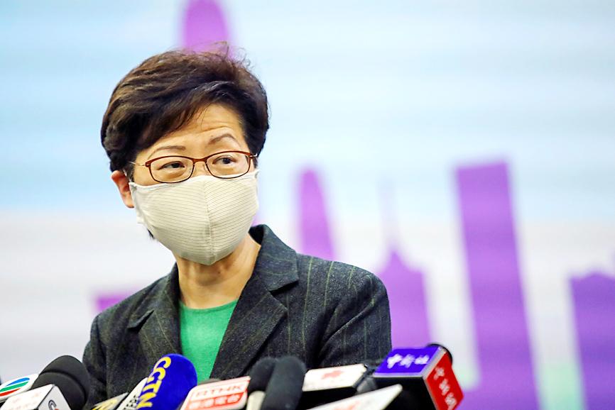Hong Kong Chief Executive Carrie Lam (林鄭月娥) yesterday called on the US to stop interfering in the territory, and that she had discussed COVID-19 controls and economic relief with mainland Chinese officials during her three-day trip to Beijing.