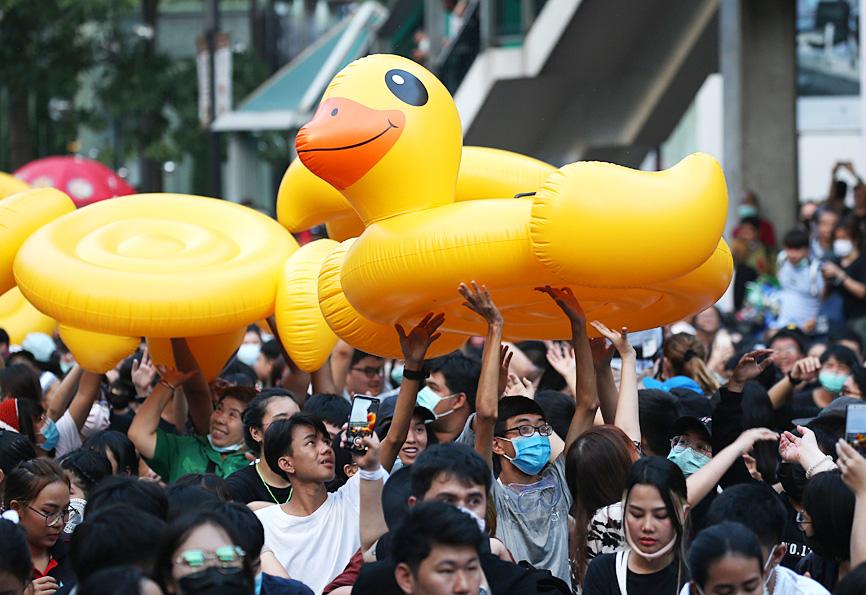 Thousands of democracy advocates yesterday gathered in downtown Bangkok after six people were shot the previous day in violent clashes, as lawmakers voted on possible constitutional reforms.