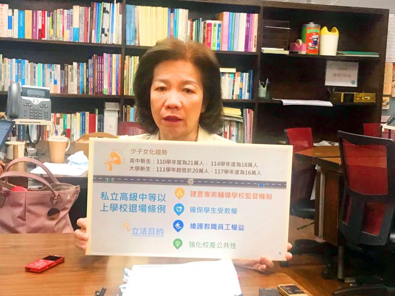 After the draft bill is passed by the Legislative Yuan, the ministry would release a list of schools that needs help for operation, she added.