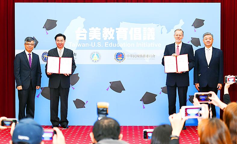 Minister of Foreign Affairs Joseph Wu (吳釗燮) said that it was “particularly meaningful” for Taiwan to strengthen bilingual education cooperation with the US at a time “when academic freedom and freedom of speech in the US and other countries are being invaded by certain political forces.”