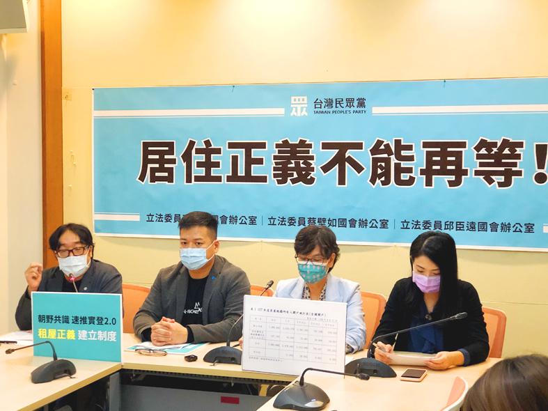 Taiwan People’s Party (TPP) Legislator Tsai Pi-ru (蔡璧如) said that the Executive Yuan’s measures were only short-term cures, calling on the government to amend the registration system of actual real-estate transaction prices and to impose a tax on vacant properties.