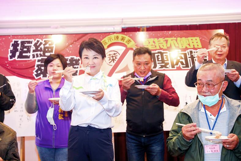 Separately yesterday, Lu restated her objection to the importation of US pork containing traces of ractopamine, as she joined Taichung City Council Deputy Speaker Yen Li-min (顏莉敏), Councilor Lee Jung-hung (李榮鴻) and representatives from the ROC Swine Association to make a declaration opposing the importation of US pork with traces of ractopamine.