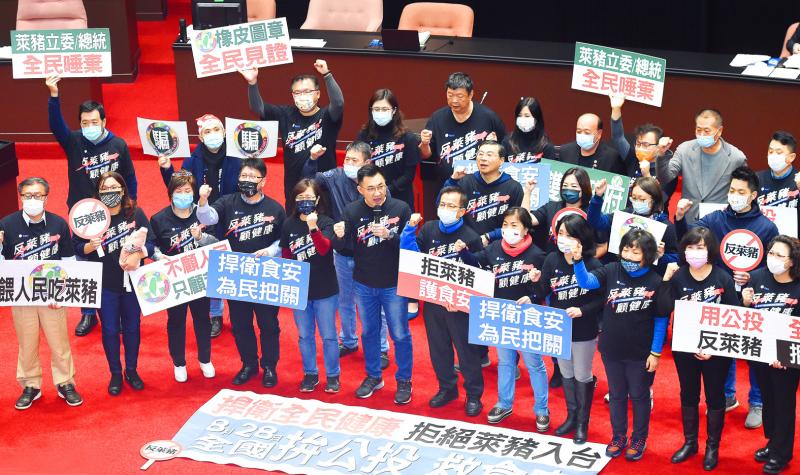 DPP lawmakers, who hold 61 of the 113 seats in the Legislative Yuan, voted to pass the nine directives, which included regulations on ractopamine residue levels; labeling of the origin of pork products; quarantine and examination procedures for imported beef; and rules for imports of US and Canadian beef.